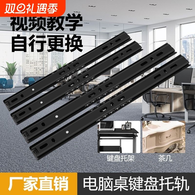 三节滑轨键盘托架轨道电脑桌滑轨吊轨抽屉导轨静音导轨10寸-12寸