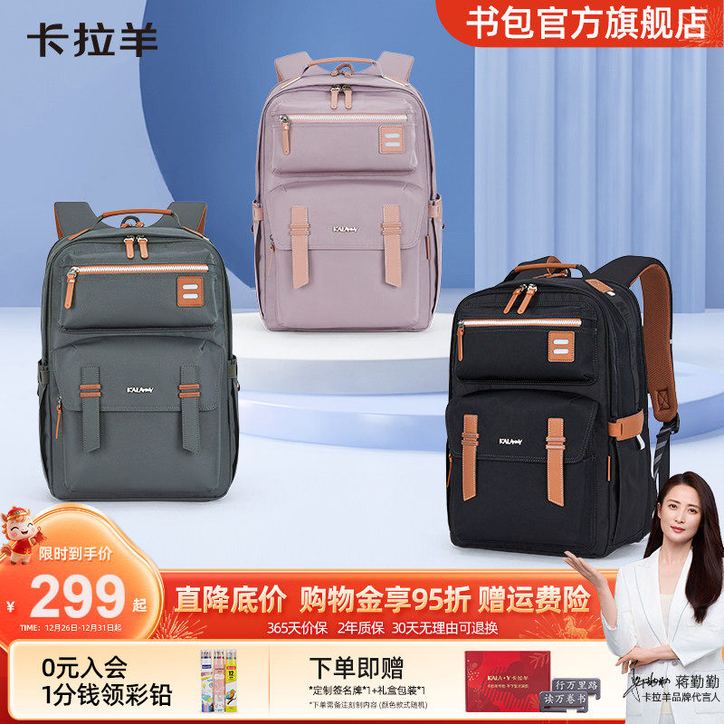 卡拉羊中学生书包简约校园初中生背包小学生女大容量高中生双肩包