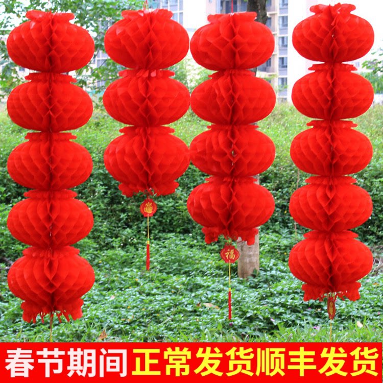 2026小红纸灯笼过新年挂饰蜂窝蛇年新年元旦大院子结婚布置装饰品