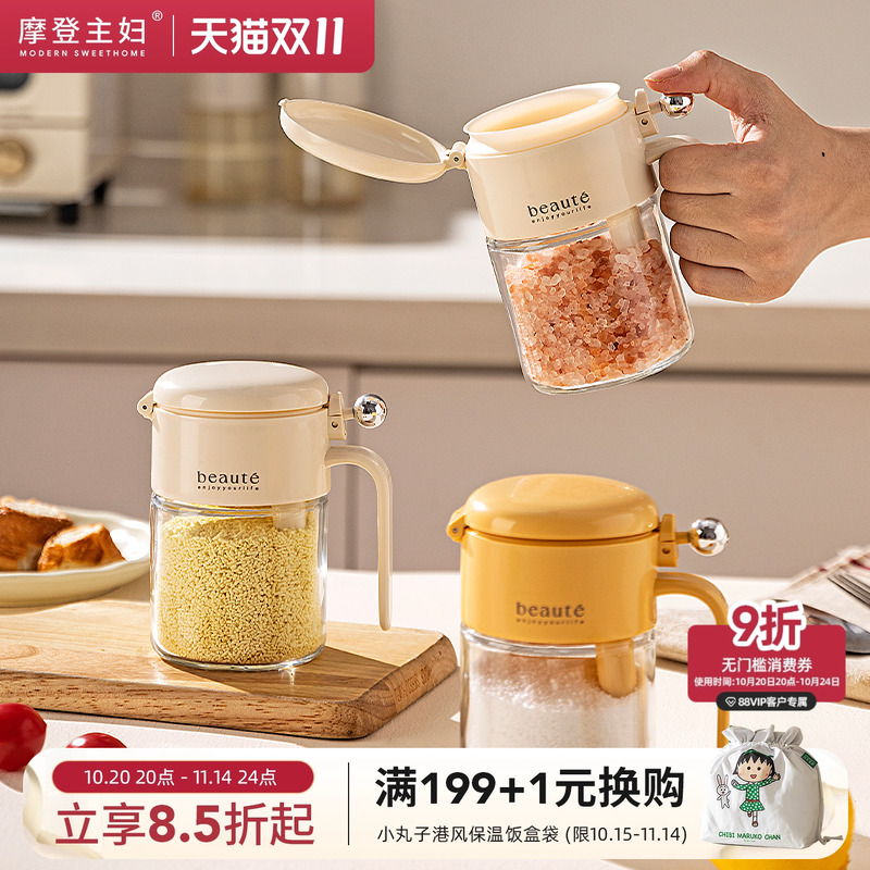 摩登主妇密封调料罐厨房家用新款料勺分离盐罐收纳调料盒调味瓶罐