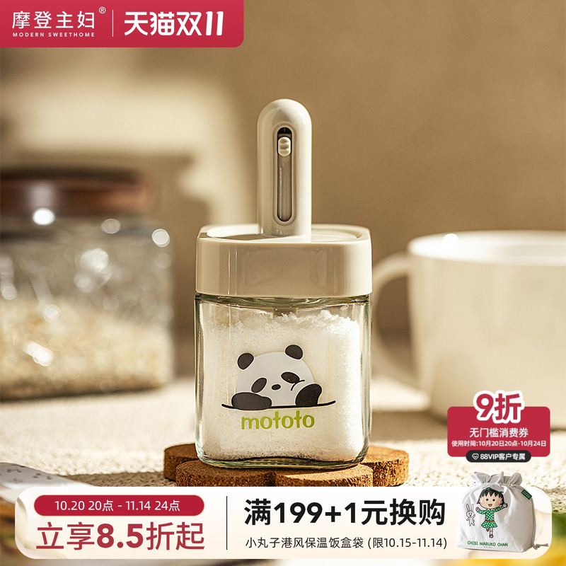 摩登主妇mototo熊猫伸缩调料罐厨房勺盖一体盐罐调味瓶罐套装组合