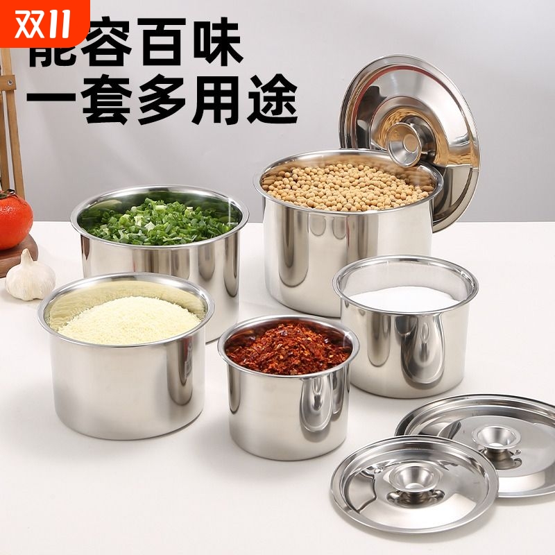 不锈钢调料罐商用猪油罐子厨房家用带盖料缸佐料味盅辣椒油调料盒