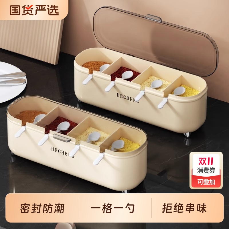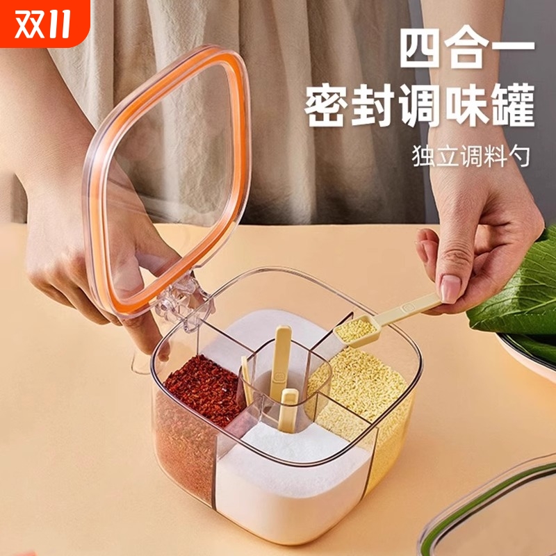 2025年新款调料盒勺料分离调料罐家用密封防潮盐罐调味瓶套装组合