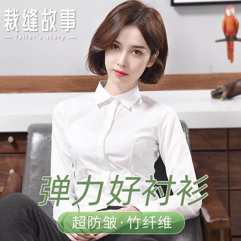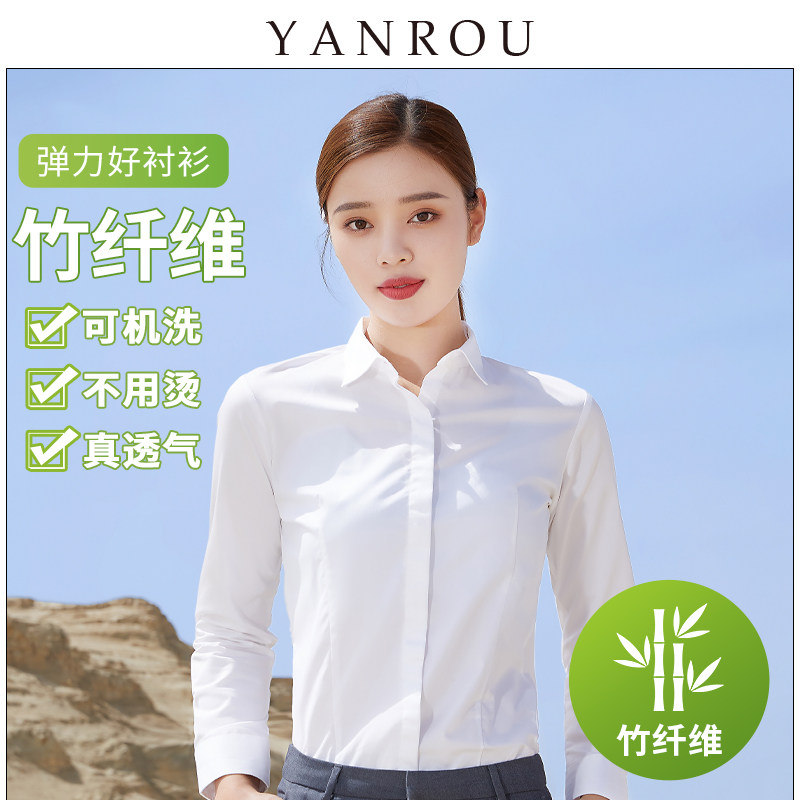 弹力白衬衫女长袖职业2021春秋正装工作服工装竹纤维免烫白色衬衣