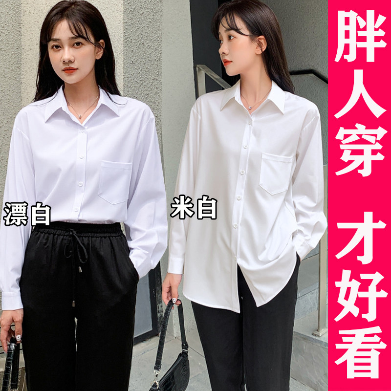 春季胖mm白衬衫女长袖职业装大码衬衣叠穿秋冬200斤工作服外搭夏