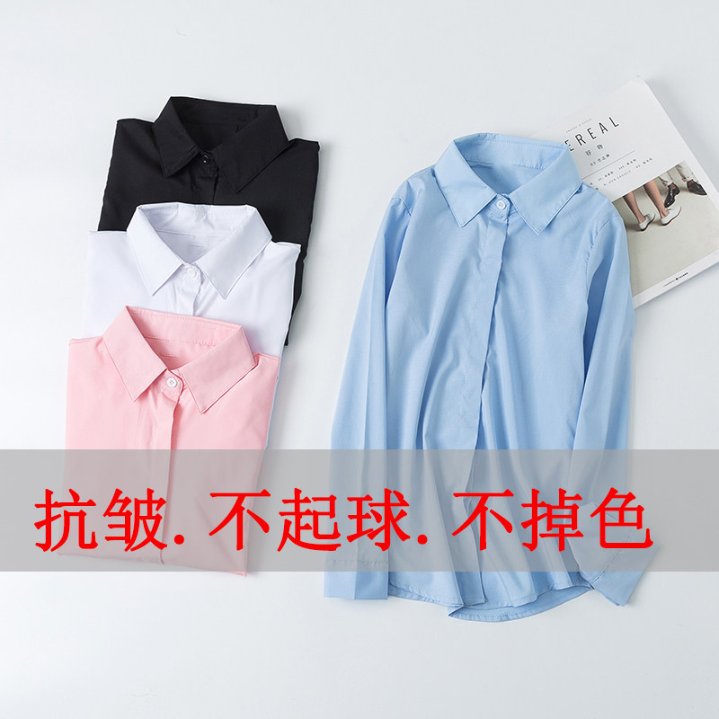 春秋季新款黑色白衬衫女长袖职业工装白衬衣工作正装上衣60棉上衣