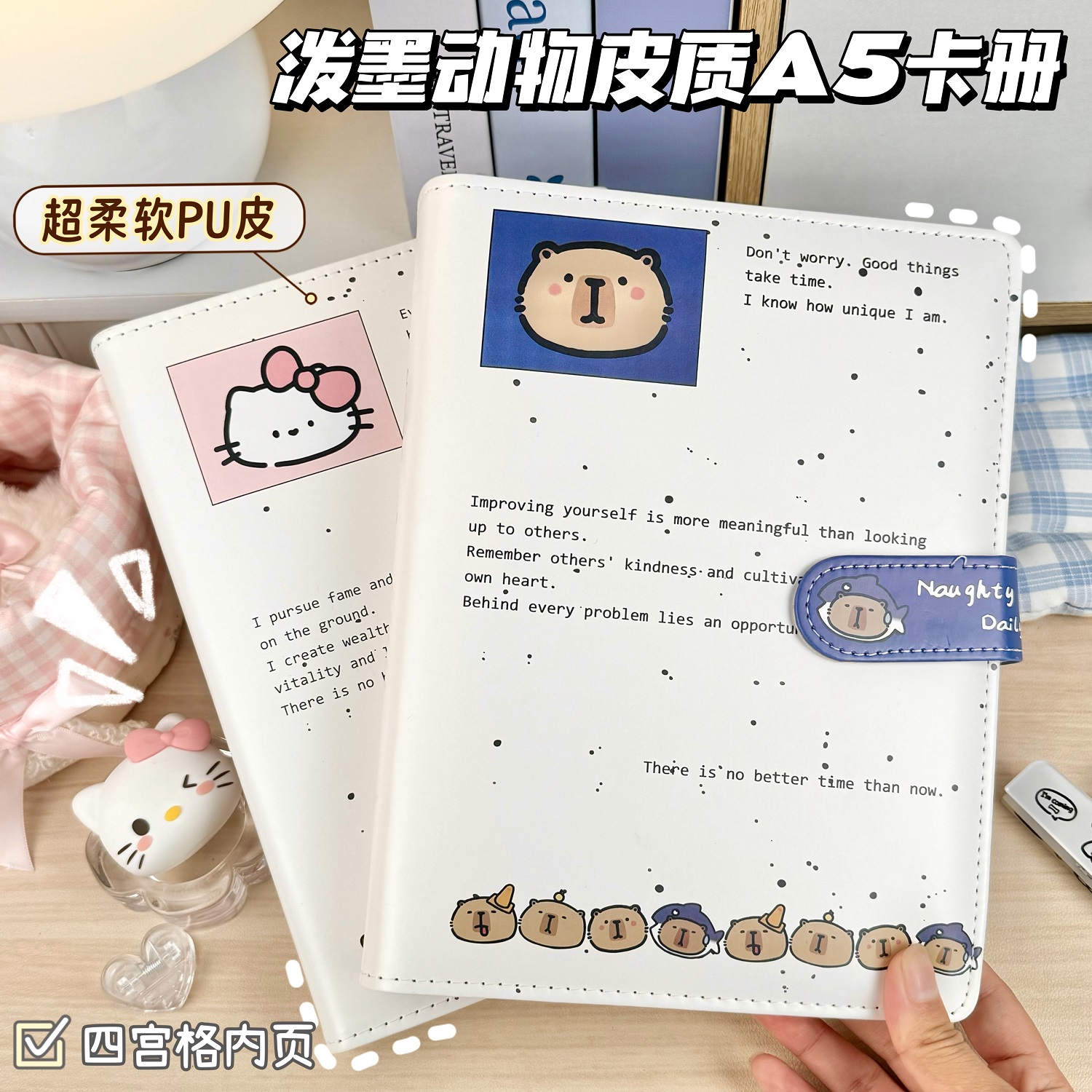泼墨卡通动物活页相册本ins风高颜值四宫格皮质卡册学生追星小卡收纳册3寸小卡收纳拍立得照片集卡集邮册子