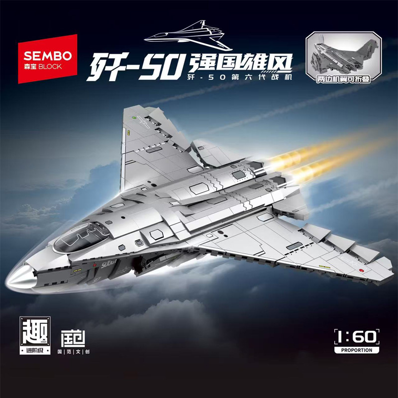 森宝积木军事歼50第六代战斗飞机组装模型男孩拼装玩具礼物202280