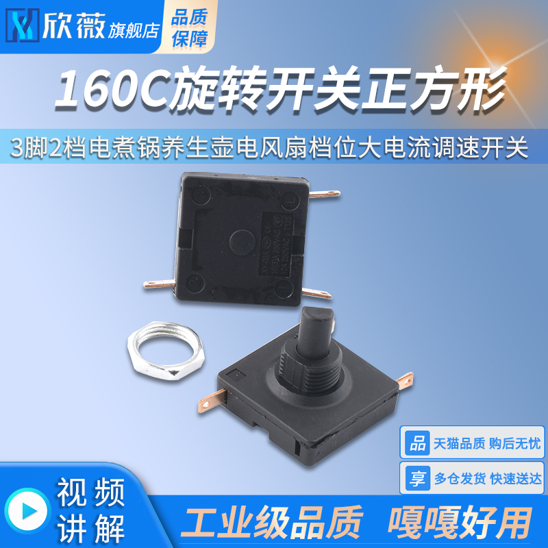 160C旋转开关正方形3脚2档电煮锅养生壶电风扇档位大电流调速开关