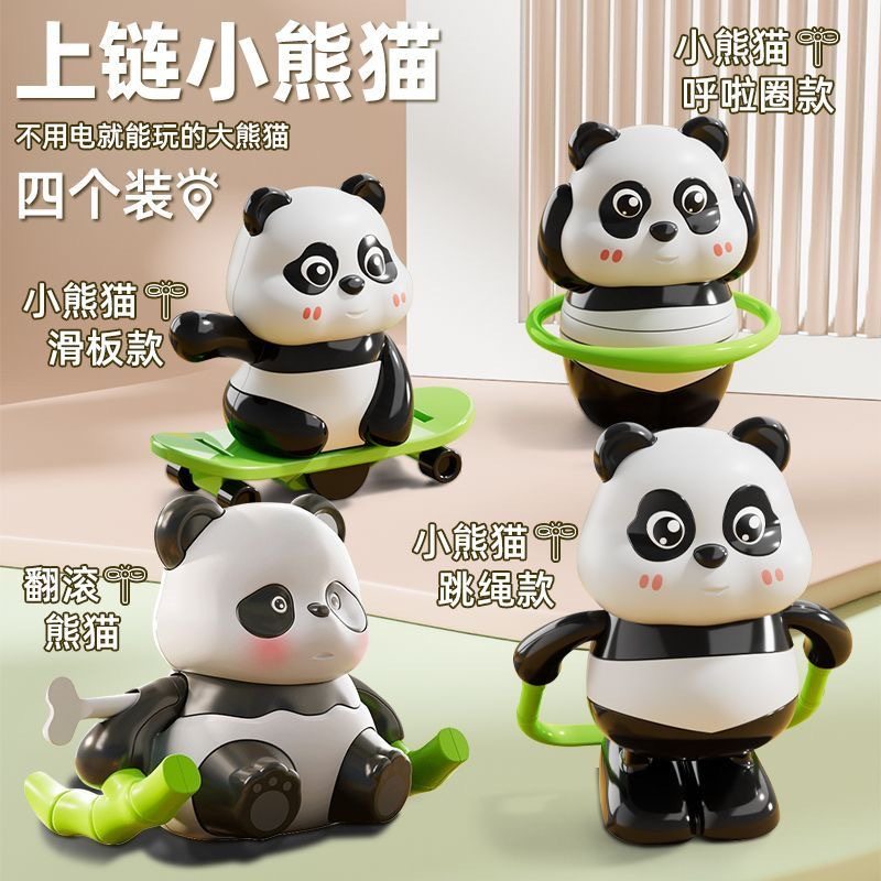 新款儿童上链发条大熊猫玩具跳绳滑板呼啦圈小熊猫早教益智男女孩