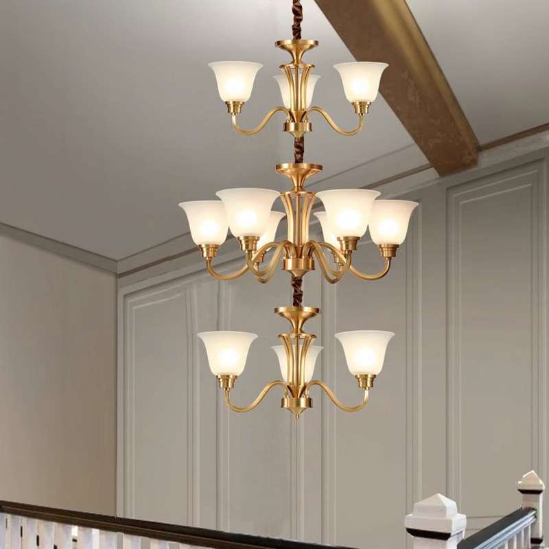 客厅吊灯美式全铜灯简约卧室餐厅灯纯铜别墅大厅酒店客房工程灯具