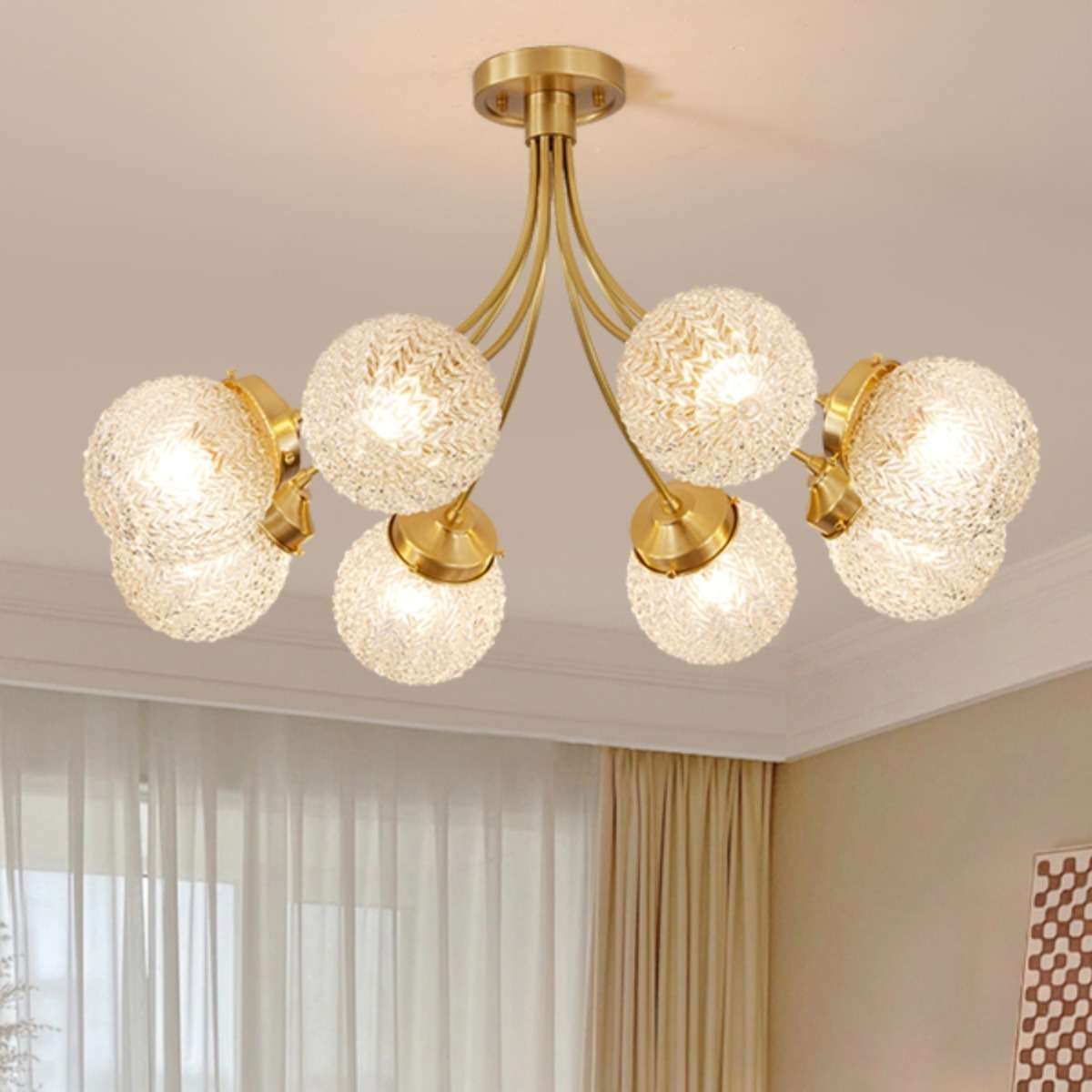 美式全铜灯饰法式现代简约客厅卧室灯书房北欧轻奢玻璃吸顶灯吊灯
