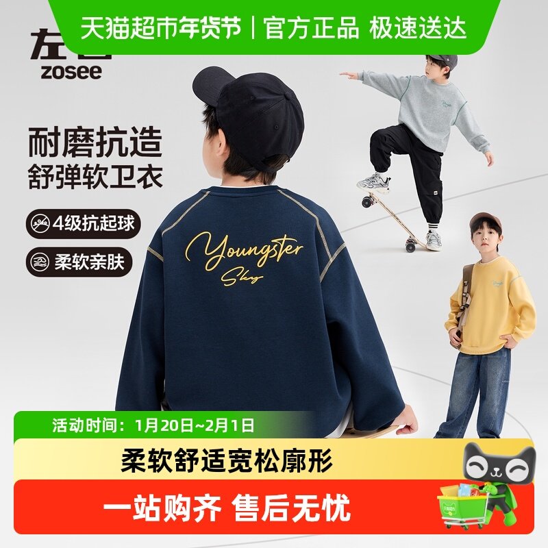 左西童装男童加绒卫衣2025新款儿童加厚新年红色秋冬外套保暖上衣