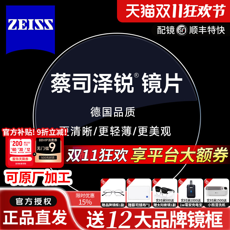 蔡司泽锐镜片1.74超薄防蓝光变色新清锐1.67近视眼镜片官方旗舰店