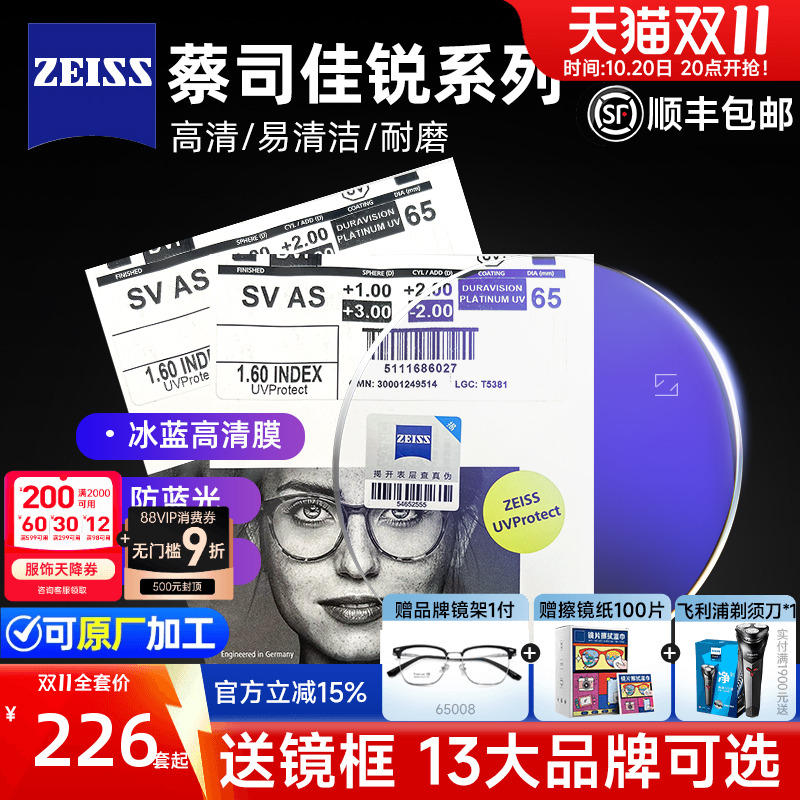 蔡司镜片泽锐防蓝光1.74配近视眼镜片新清锐铂金膜变色官方旗舰店