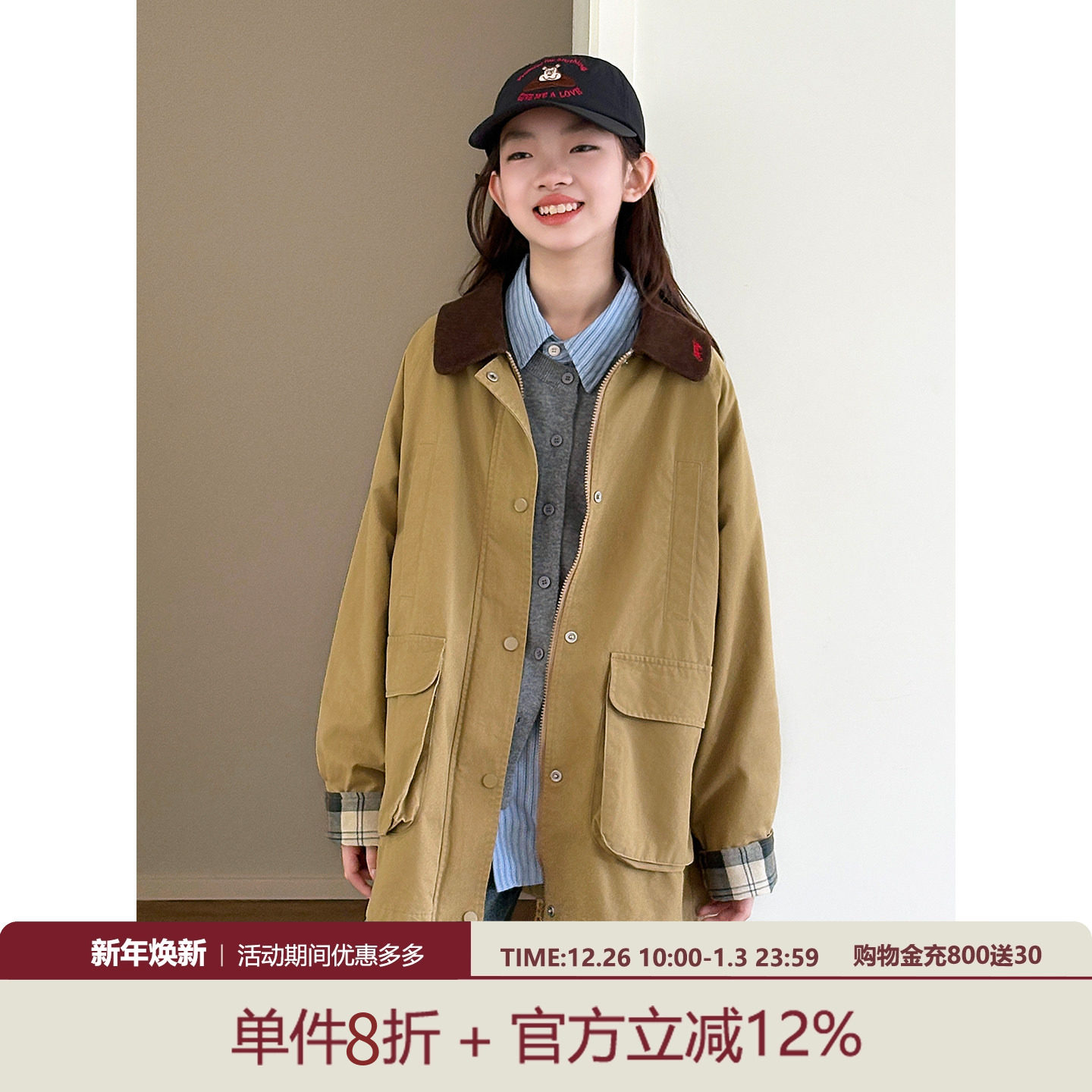 女大童外套【少女巴恩风】青少年2025秋装新款复古夹克学院风衣潮