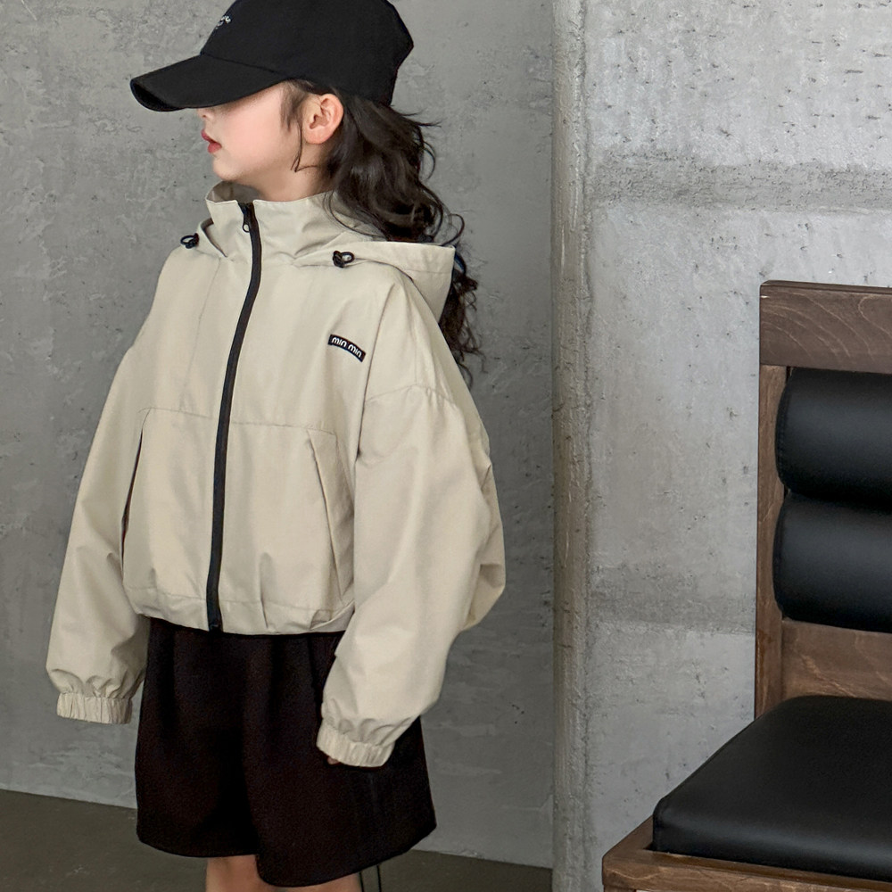 时尚连帽冲锋衣外套少女春秋2025新款初高中学生运动休闲工装风衣