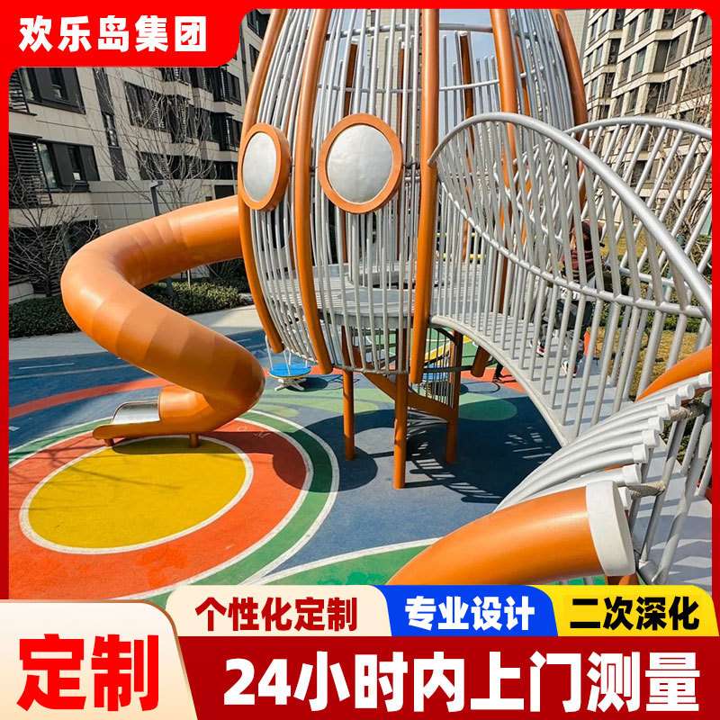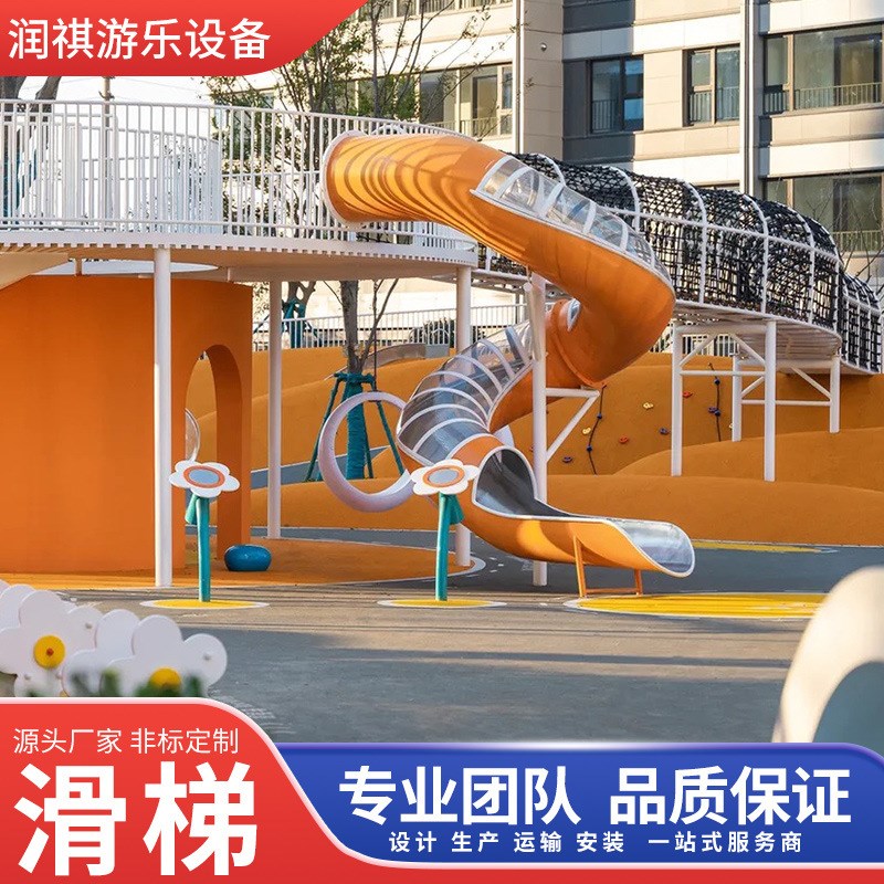 户外非标不锈钢滑梯文旅景观公园小区儿童攀爬网钻洞大型游乐设备
