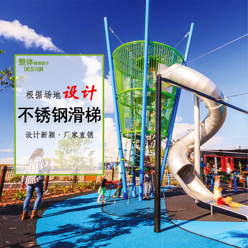 不锈钢滑梯儿童钻洞3到10岁攀爬网大型游乐设备厂家户外滑滑梯