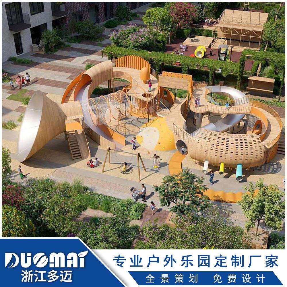 不锈钢滑梯户外大型游乐设备儿童体能训练木质攀爬架爬网玩水设备