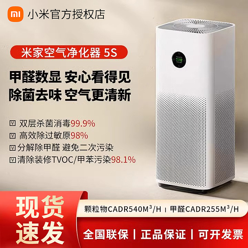 下拉享优惠】小米米家空气净化器5S除甲醛菌数显家用医护级净化机