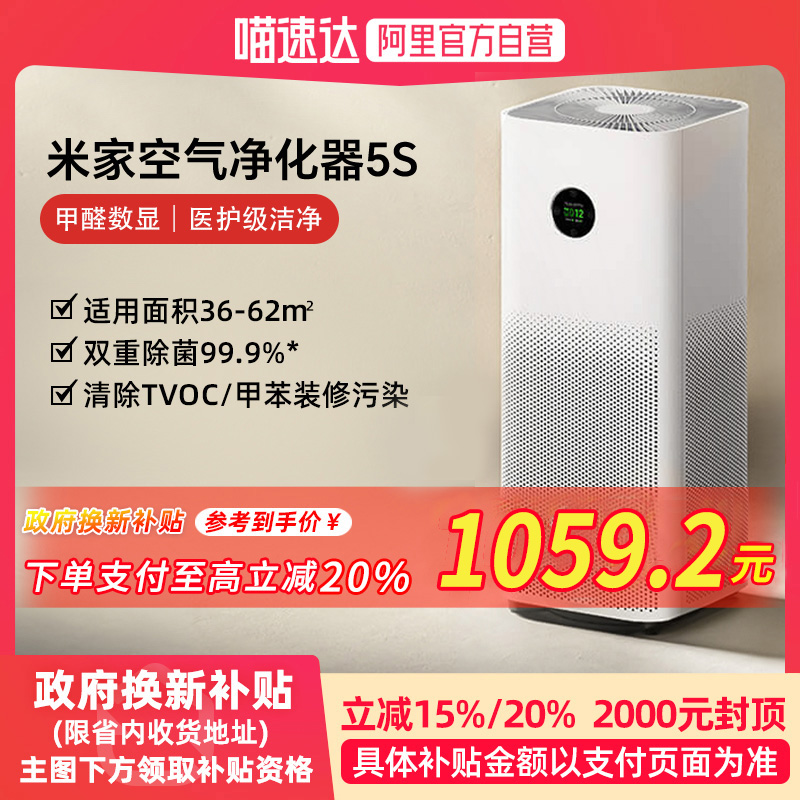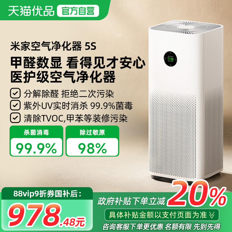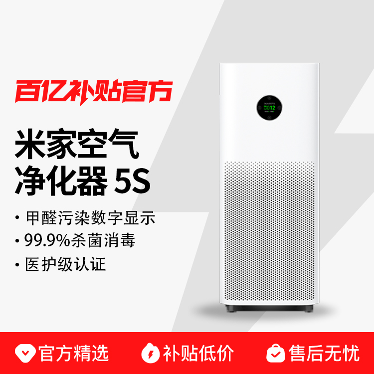 【政府补贴20%】小米米家空气净化器5S除甲醛去烟味医护级净化机