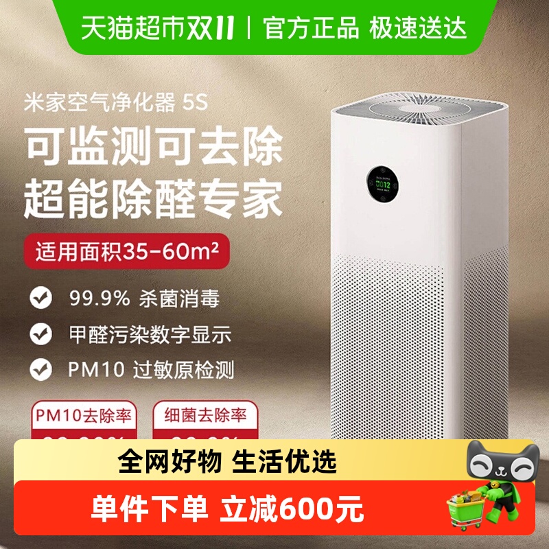 【保价双11】小米米家空气净化器5S除甲醛宠物医护级家用净化机