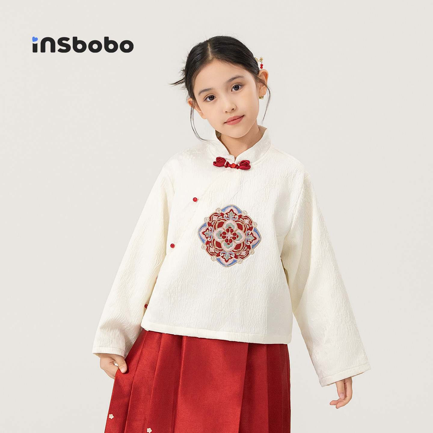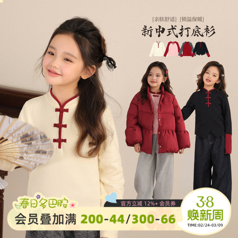 INSbobo女童t恤2026新款儿童上衣漂亮国风长袖唐装女孩衣服童装春
