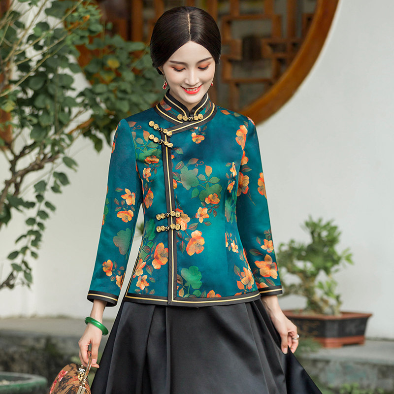 华族经典中式女装改良旗袍上衣复古长袖中国风汉服民国唐装女春夏