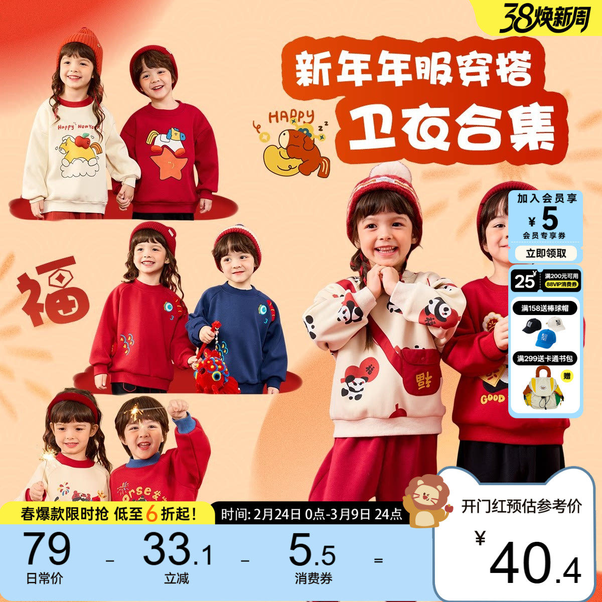 【年装清仓】儿童卫衣红色男童上衣女童唐装喜庆宝宝衣服女宝长袖