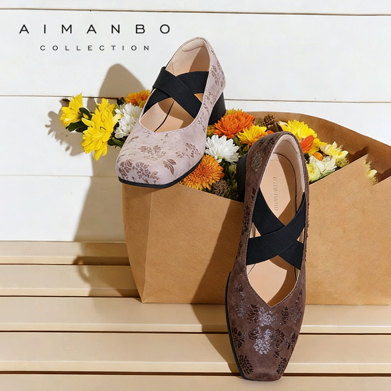 漫步佳人2026春季新品猪鼻子芭蕾舞单鞋法式磨毛国风中式浅口鞋女