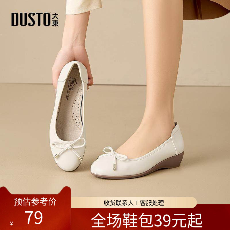 大东浅口鞋女鞋2026春季新款方跟低跟套脚圆头甜美蝴蝶结Q0182
