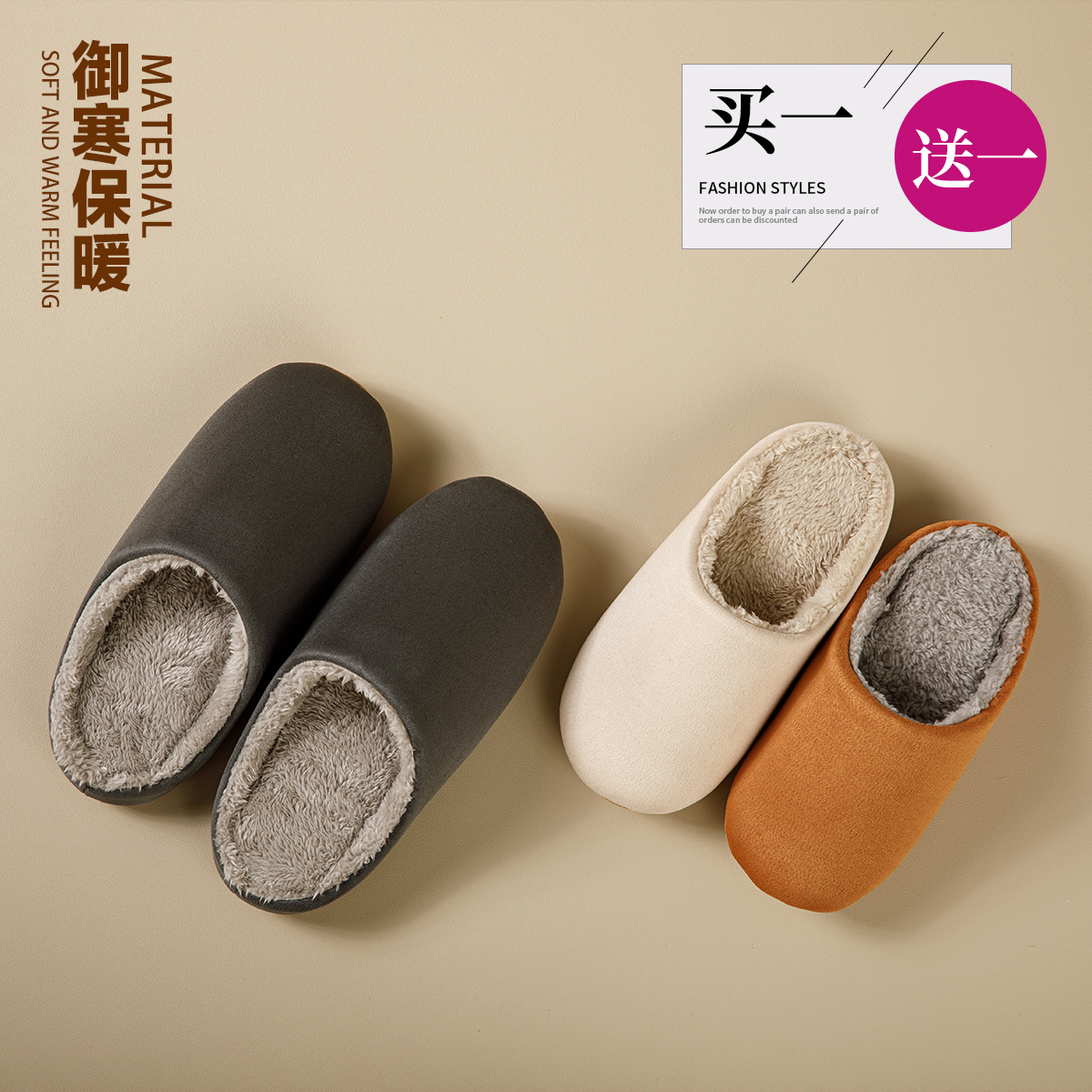 买一送一情侣静音棉拖鞋女秋冬季加绒保暖室内居家木地板拖鞋冬天