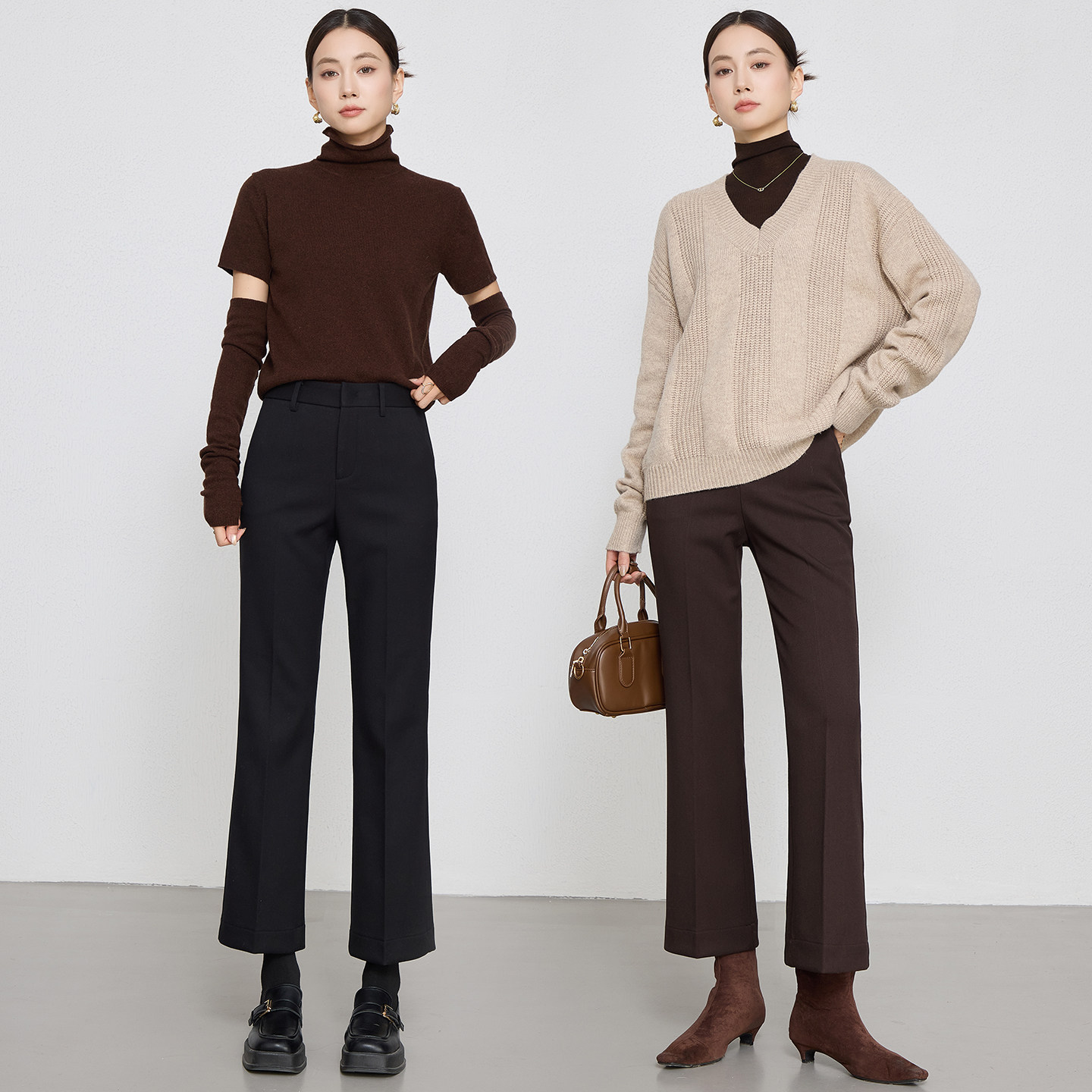 爆款九分喇叭裤子女秋冬新款高腰显瘦修身女裤加绒气质微喇西装裤