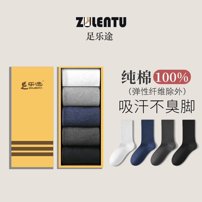浪莎纯棉男士中筒商务袜四季中厚短筒休闲袜吸汗透气纯色简约男袜