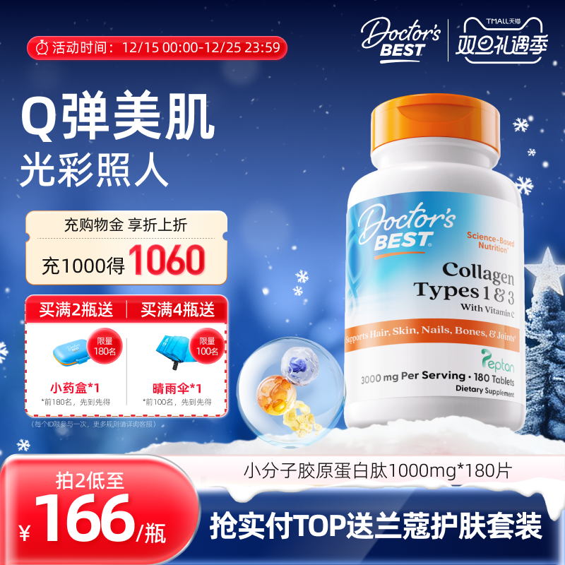 Doctor's Best多特倍斯美国进口胶原蛋白片焕亮美颜蛋白肽片180粒
