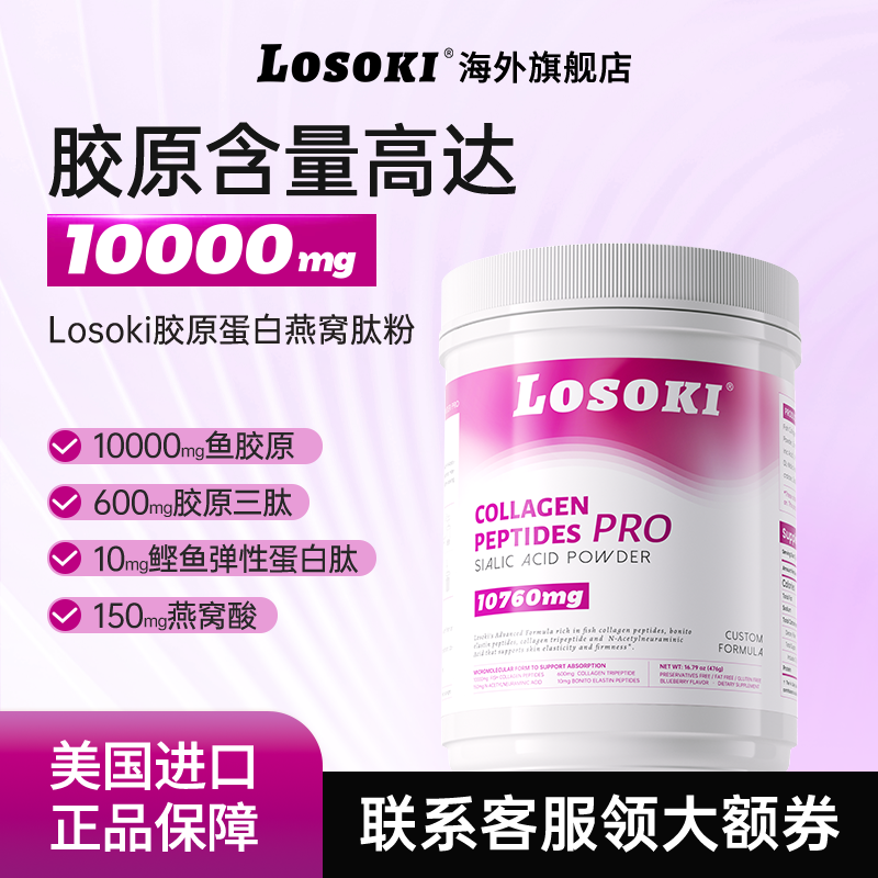 losoki胶原蛋白肽燕窝肽粉乐斯可燕窝酸小分子鱼胶原垮脸进口正品