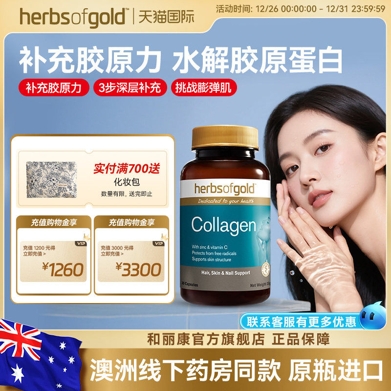 herbsofgold和丽康澳洲进口胶原蛋白口服胶囊高浓度30粒