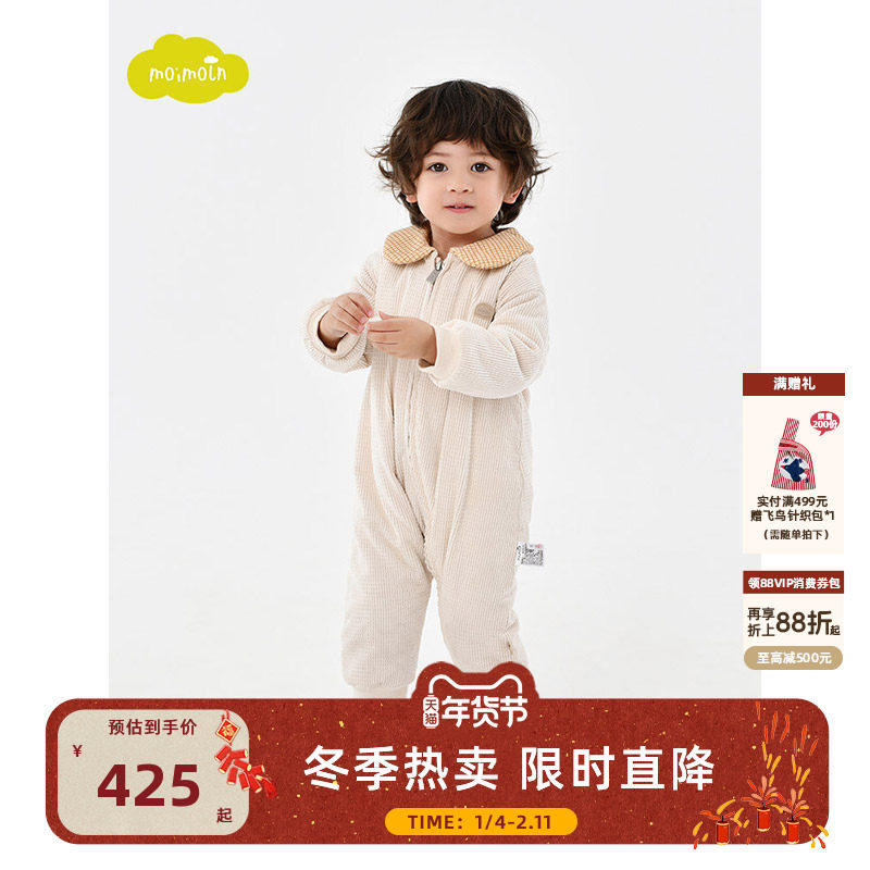 婧麒新生婴儿衣服冬季保暖夹棉连体衣小月龄宝宝打底a类哈衣冬装