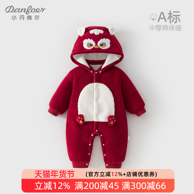 小丹佛尔宝宝连体衣夹棉保暖秋冬季婴儿哈衣加绒加厚可爱动物爬服