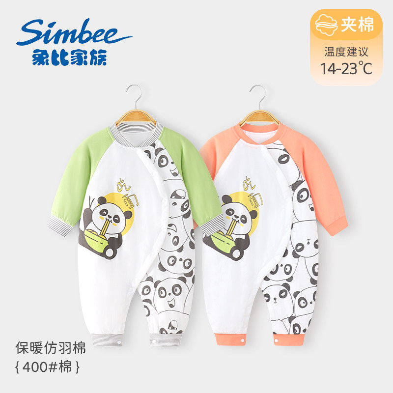 象比家族新生儿夹棉保暖连体衣秋冬季婴儿哈衣初生宝宝睡衣服冬季