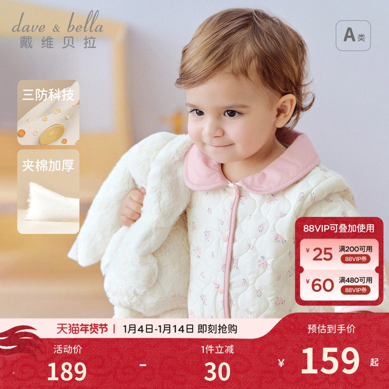 【三防】戴维贝拉新生儿A类爬服女宝新款夹棉连体衣冬季婴儿哈衣