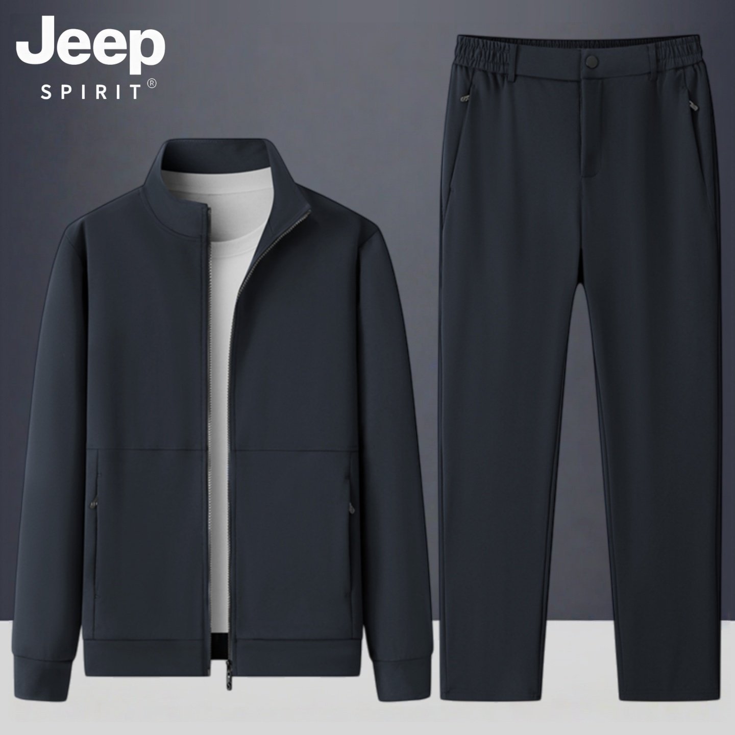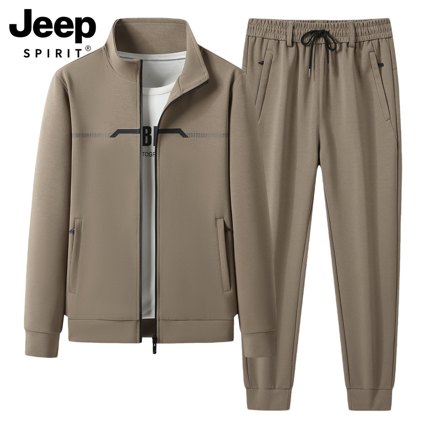 吉普运动套装男士春秋款中年爸爸男装春季跑步休闲运动服两件套男