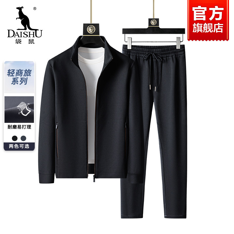 袋鼠春秋季新款立领夹克男中年商务外套男士裤子休闲运动两件套装