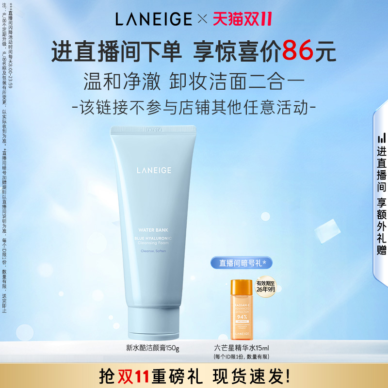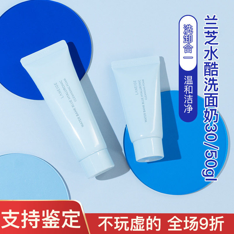 Laneige/兰芝洗面奶中样新水酷透明质酸嘭润洁颜膏清洁净澈30g