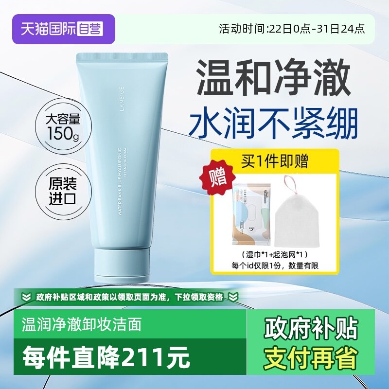 兰芝洗面奶新水酷透明质酸嘭润洁颜膏卸妆清洁二合一洁面专柜正品