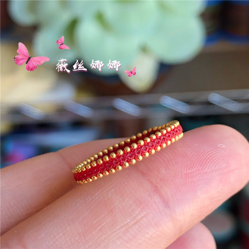 薇丝娜娜 蜡线手工本命年红绳手链超细迷你进口14k包金珠转运戒指
