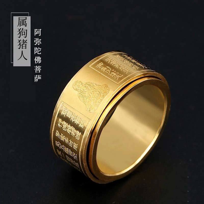 十二生肖转运戒指男八大守护神本命佛钛钢指环可旋转对戒可转xa