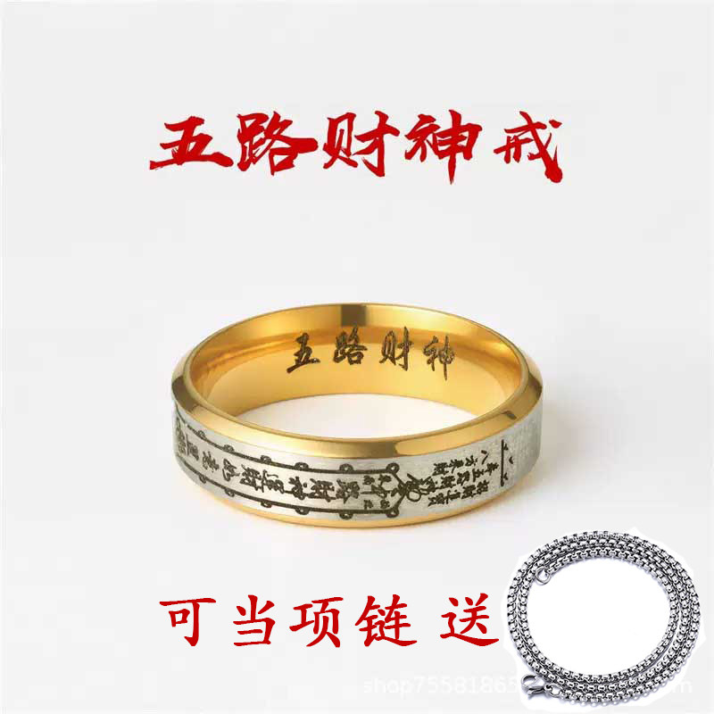 6mm道家符五路财神不锈钢转运戒指男女款可当项链送礼国风不掉色