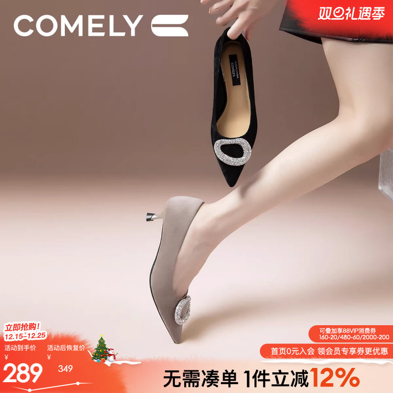 康莉商场同款高跟鞋女2025春水钻尖头细跟优雅晚宴真皮时装鞋